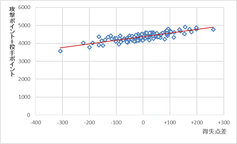 攻撃ポイント = (塁打数 + 四死球数 + 盗塁数)−(併殺打数 + 盗塁死数)