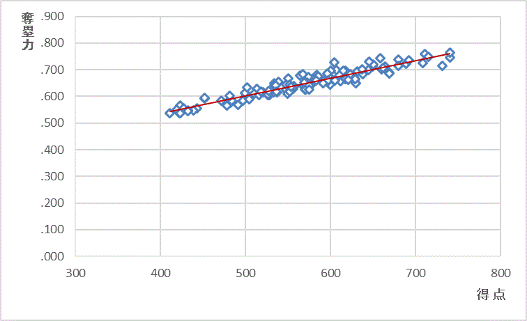 成功の度合いは、塁打数と四死球数で計測(=長打は大成功、四死球や単打は成功)